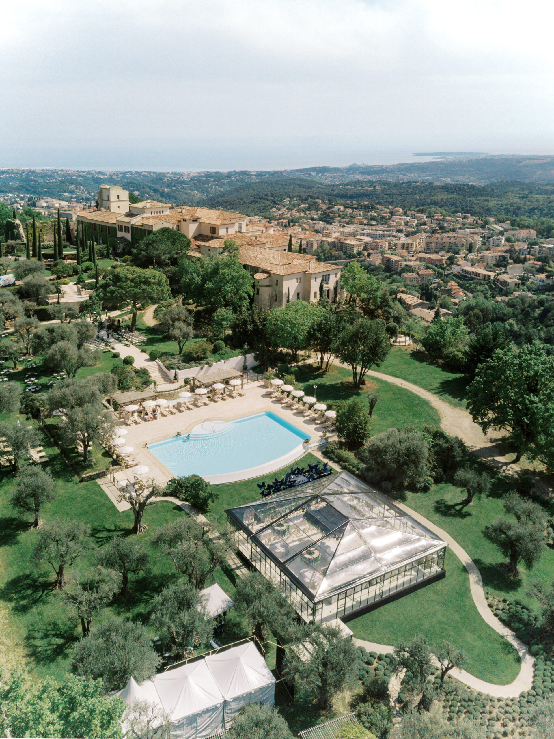 Weddings of more than 80 guests require full buyout of Château Saint-Martin & Spa, which transforms the property into a private residence for your celebration. Exclusive hire includes all 52 accommodations, the Michelin-starred restaurants, spa, pool, tennis courts, and parking. The ideal capacity is 80 to 100 guests, with a maximum of 150. Please note that they do not host any weddings from late May to mid-September.