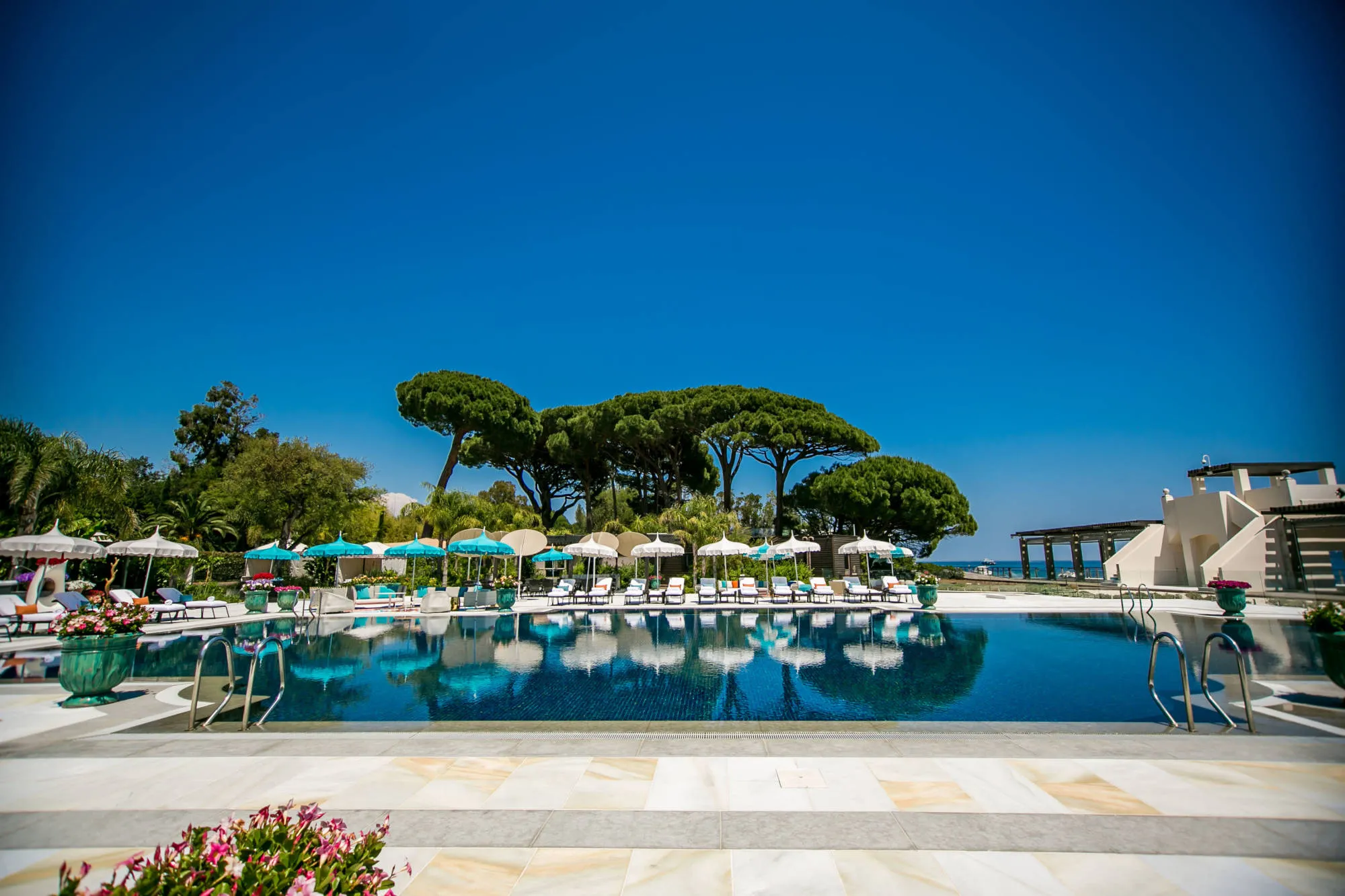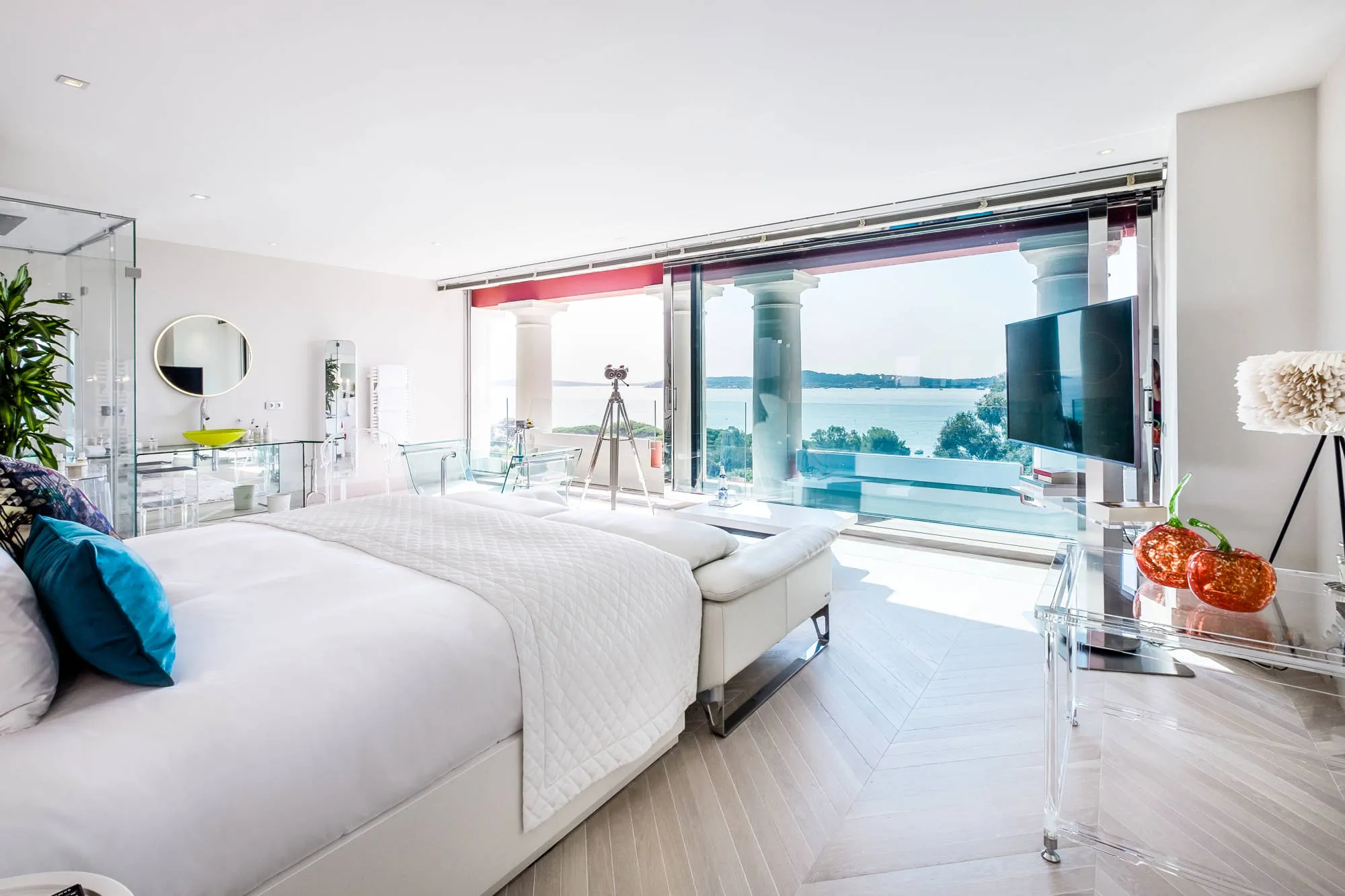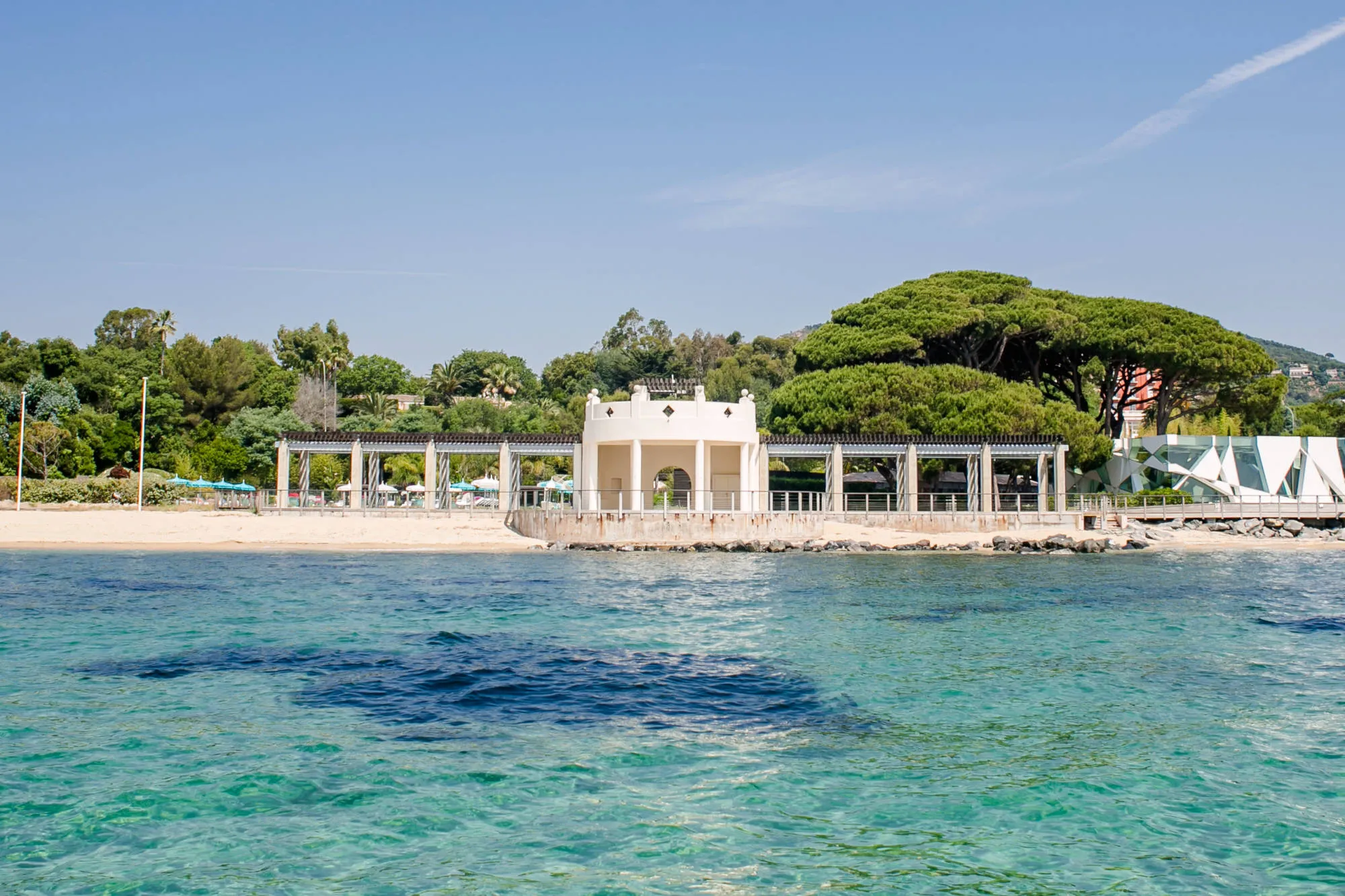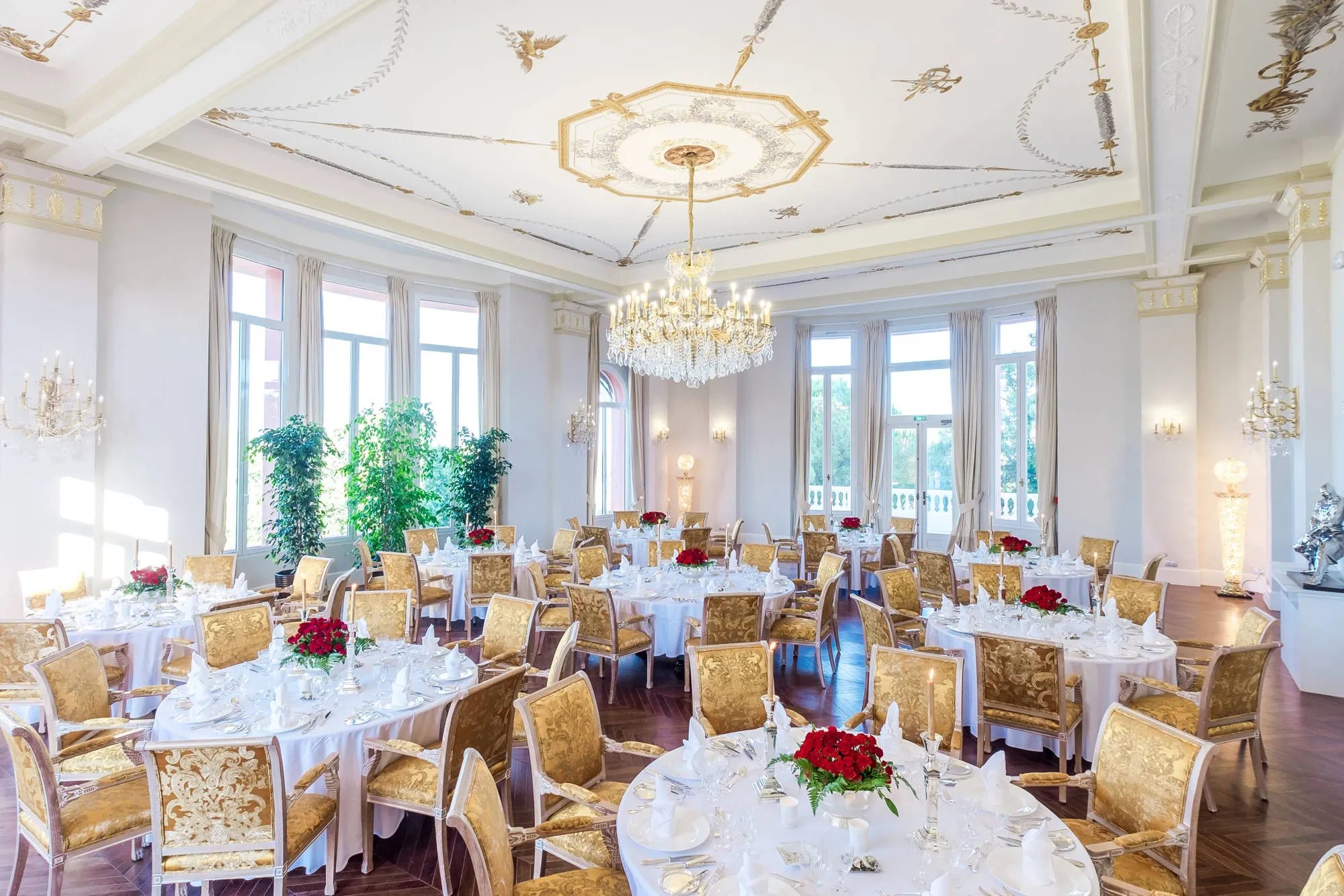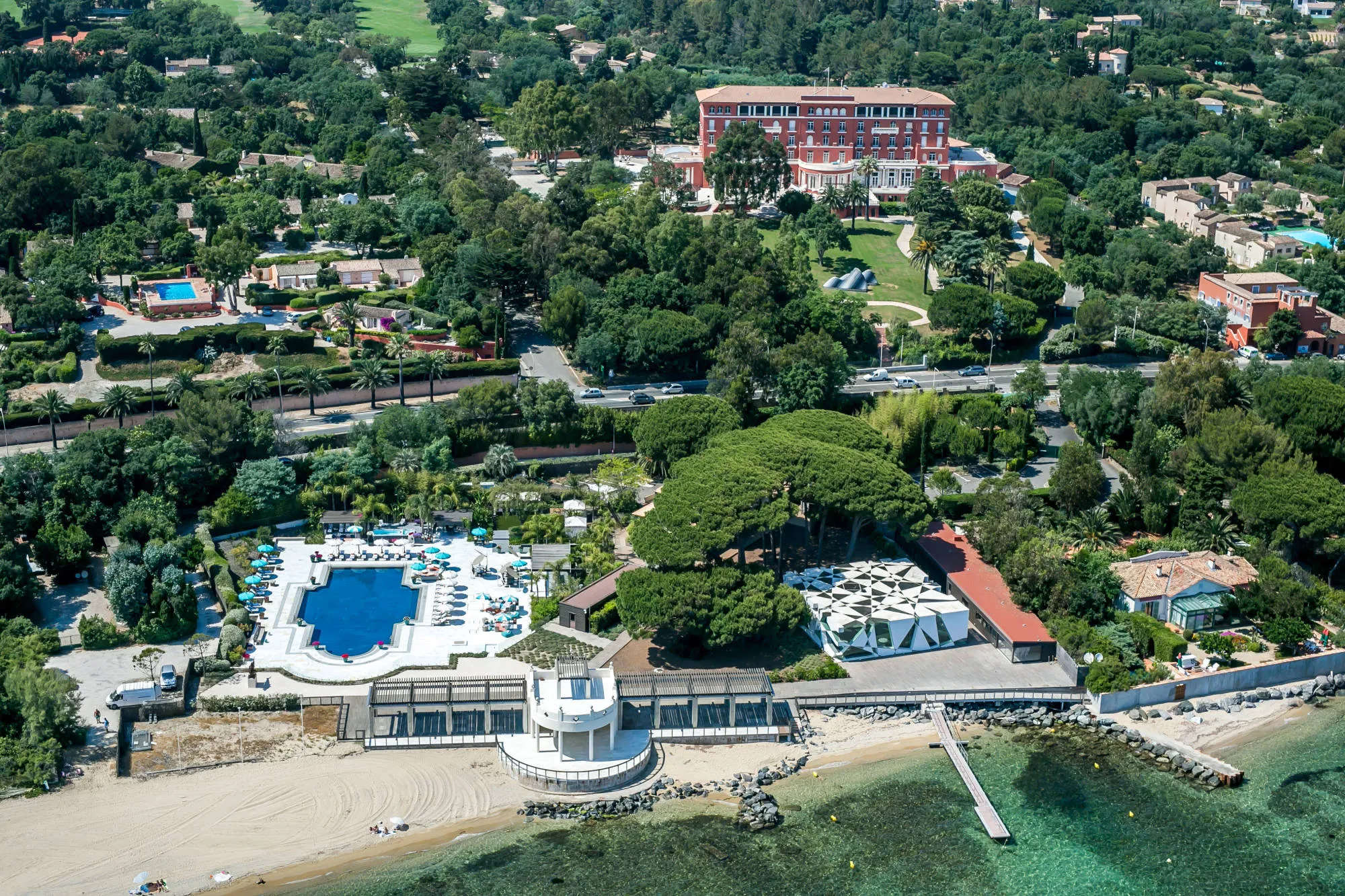 Available for exclusive use, Le Beauvallon suits weddings that require discretion, flexibility, and a high level of service. The hotel sits within landscaped gardens adjacent to the prestigious Golf Club de Beauvallon. It features its own beach club, a private pontoon for yacht tenders, and direct shoreline access. The pool area includes a 25-metre heated pool, framed by terraces and tropical plants. At the heart of the estate sit the early 20th-century Rotunda and the glass-fronted summer pavilion designed by Pritzker Prize-winning architect Toyo Ito. Together, they create a striking focal point for ceremonies and evening celebrations.
