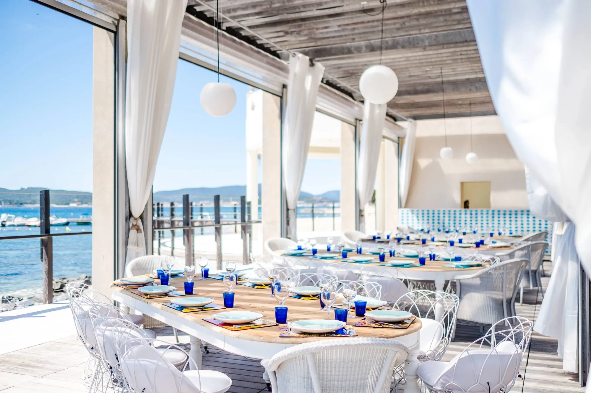 COMO Le Beauvallon offers 11 indoor and outdoor event spaces, allowing celebrations to flow naturally across the venue. Indoors, the grand ballroom, salon spaces, and Winter Garden conservatory suit both formal dinners and evening receptions. Indoor events can host up to 200 guests, depending on layout.
